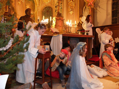 Un temps festif, spirituel et fraternel, vécu dans une ambiance chaleureuse et multigénérationnelle, auquel tous sont invités à participer. Quelques jours avant, un « groupe de maison » confectionnera chez Bernadette trois à quatre cents « mince pies », petites spécialités anglaises de Noël, que complèteront, accompagnés de chocolats et de vins chauds, des gâteaux et pains d’épices faits par parents et grands-parents.
